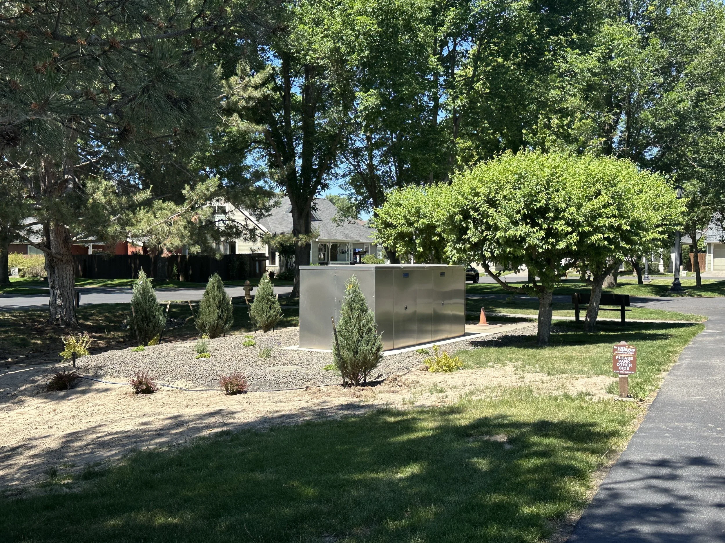 To ensure the structure integrates seamlessly with its surroundings, a landscaping plan was included in the final design. Once mature, the plantings will effectively screen the enclosure, minimizing its visual impact and blending it into the neighborhood context.