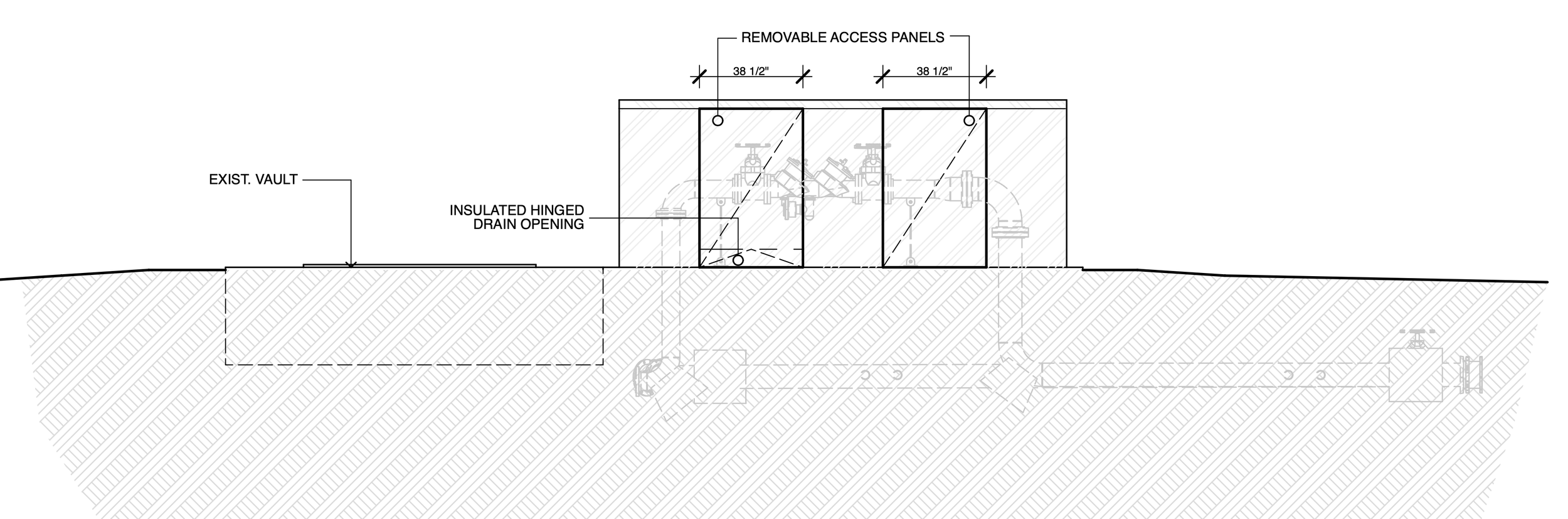 This project involved the expedited design and permitting of a structure to house a neighborhood backflow preventer—an essential piece of infrastructure ensuring water system integrity. Given the time-sensitive nature of the project, our team worked efficiently to streamline the process within our office, from initial concept through to permit approval.