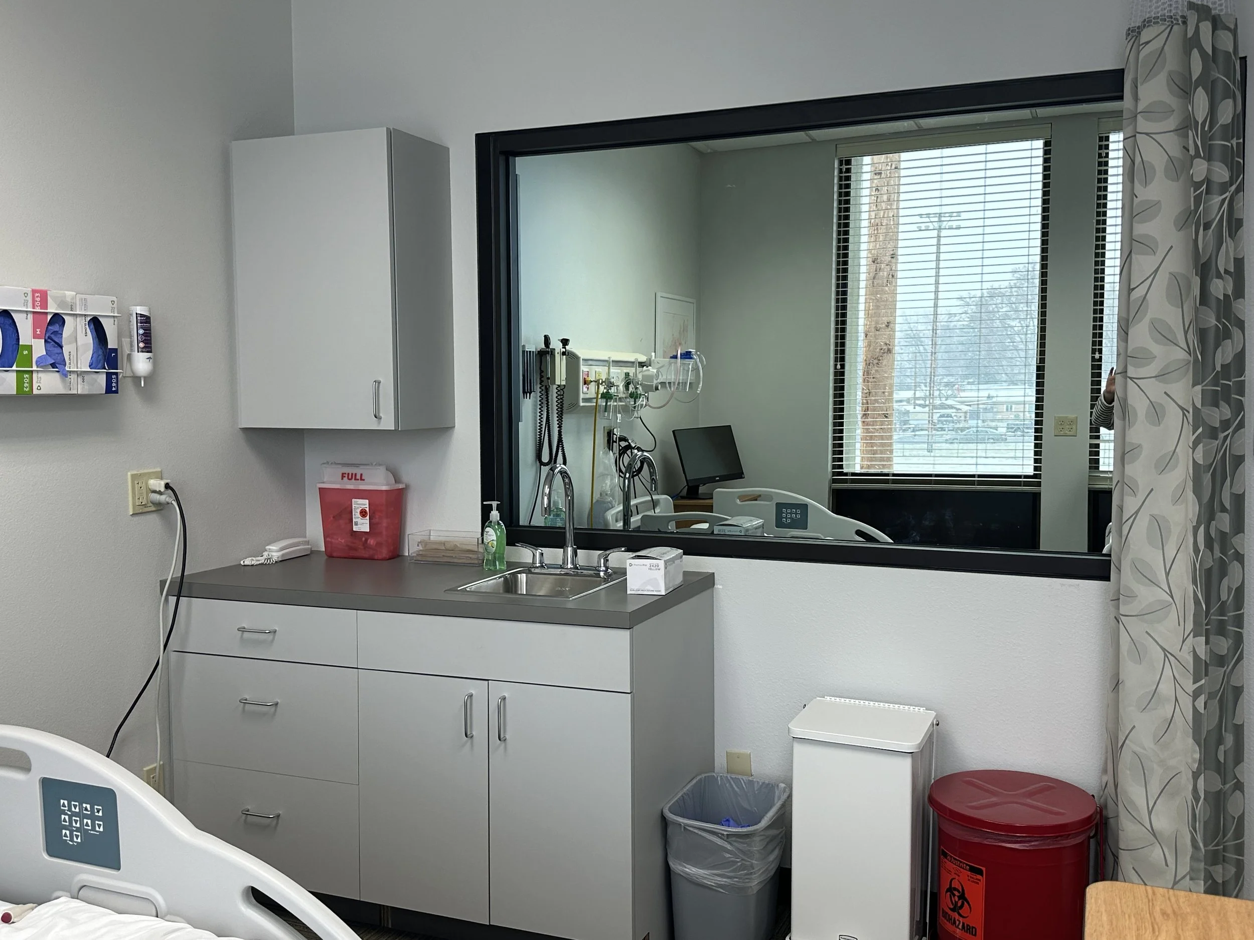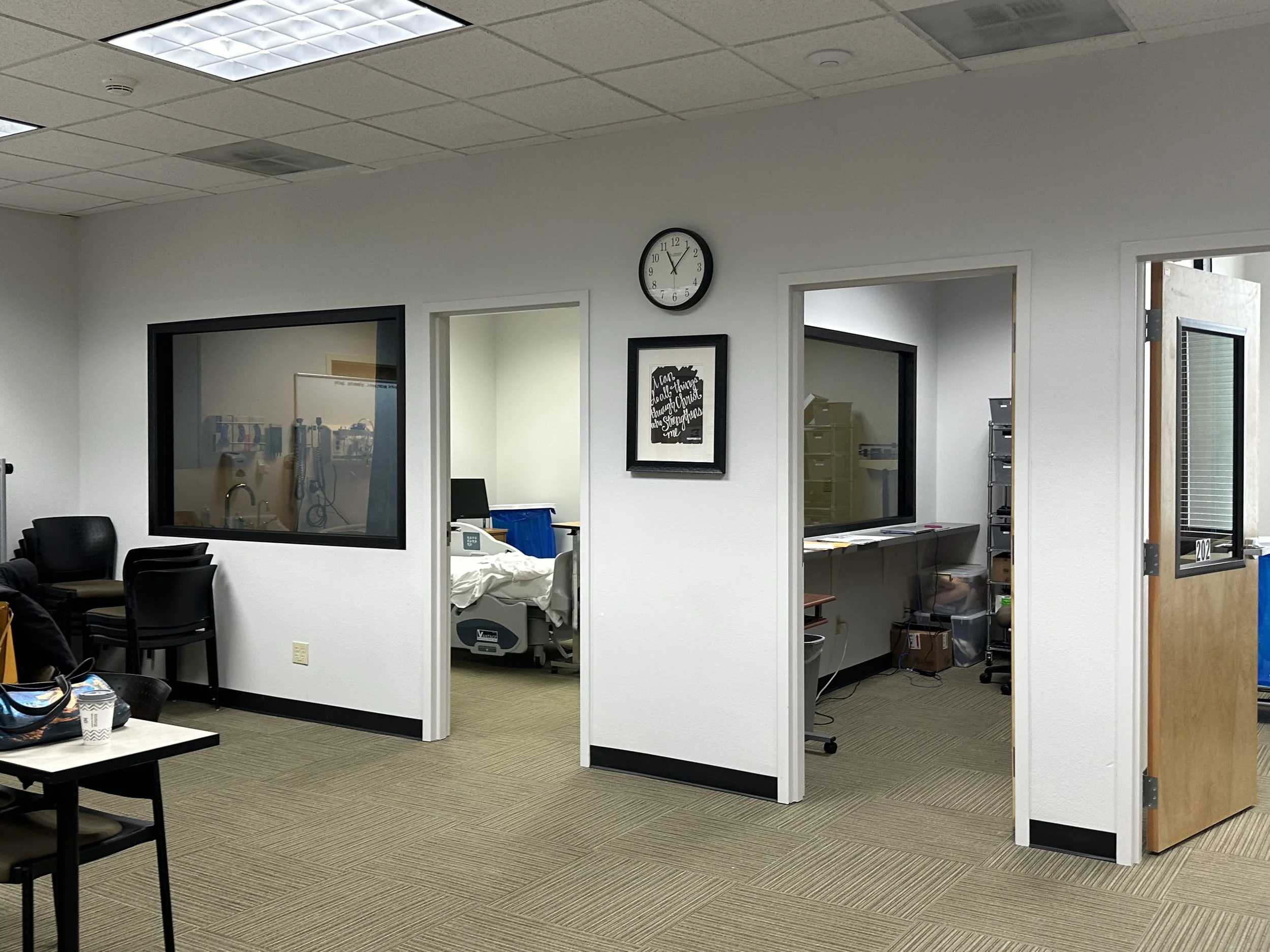 We designed a Nursing Simulation Lab for the Walla Walla University Nursing Department. It is an educational space consisting of two simulated hospital rooms with an observation room between. Nursing students can practice procedures while their educators watch and critique from an adjoining private space with one way glass.